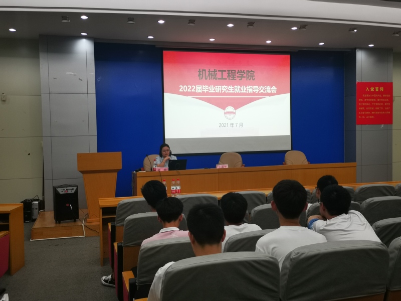 7月14日下午,机械工程学院在屯溪路校区格物楼214举办2022届毕业研究生就业指导交流会,此次交流会特邀学校就业管理科科长范鹏飞老师主讲,由研究生辅导员侯静主持。