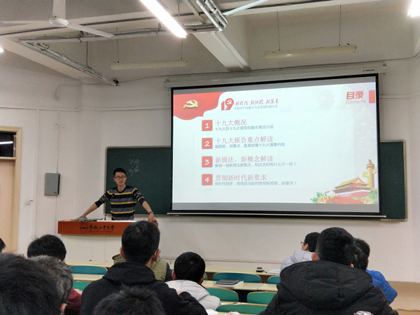 为认真学习、深入领会、大力宣传、全面贯彻党的十九大精神,11月20日-12月4日,机械工程学院2017级分班级开展小班辅导,对十九大精神进行宣讲和解读。