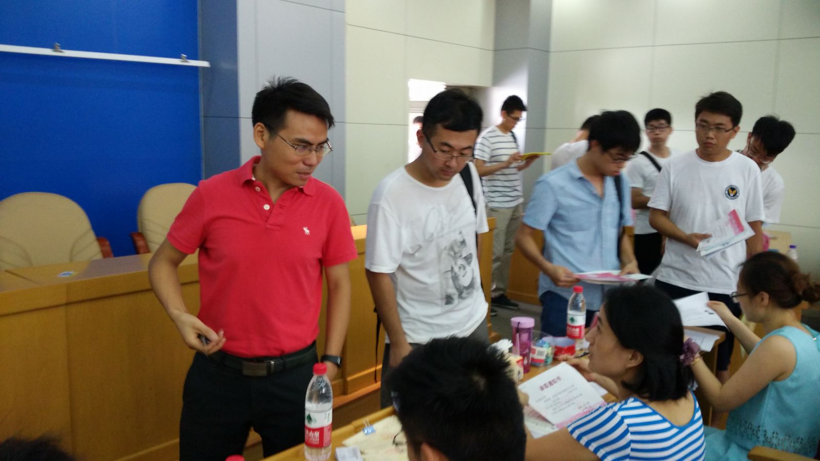 为方便新生报到,英国上市公司365迎新工作小组在格物楼214提供一站式服务,入学程序简化而高效。在研究生教务员沈老师的带领下,志愿者们分工明确,有条不紊地进行着报到学生的信息统计、资料收集与发放工作,对于新生遇到的各种问题,他们耐心解答,整个迎新工作紧张有序地进行。研究生辅导员侯老师积极的帮助家庭经济困难的新生办理“绿色通道”,并对学生的家庭和思想状况都做了详细的记录,努力帮助新生解决学习、生活问题,使他们将更多的精力投入到学习中。学院领导也高度重视迎新工作,黄海鸿副院长亲自到迎新现场慰问迎新工作人员和新生,关切询问报到情况,在肯定工作成效的同时提出一些建议,促使迎新工作做到更好。