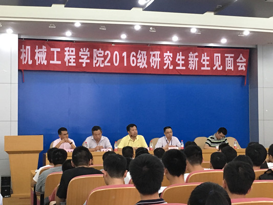 8月24日下午,机械工程学院2016级研究生新生见面会暨入学教育在屯溪路校区格物楼二楼报告厅举行。学院党委书记韩江、副院长黄康、副院长黄海鸿、党委副书记李宏国、院长助理叶家鑫、教务员、研究生辅导员和全体新生200余人参加了本次见面会。