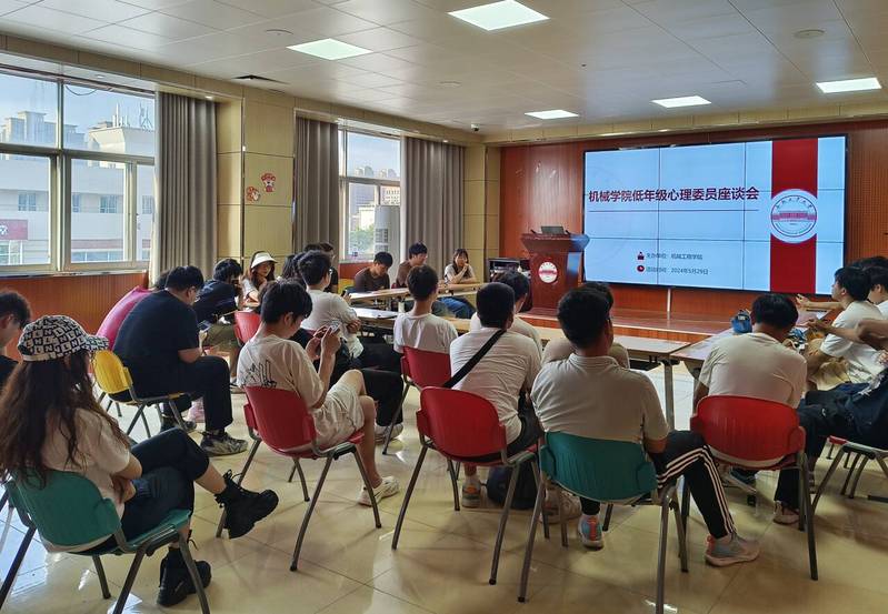 5月29日下午,机械工程学院在翡翠湖校区综合楼302宣讲厅召开学院低年级心理委员座谈会,会议由学院大学生发展辅导中心主任陈紫燕主持,来自2022、2023级的近30名心理委员参与会议。
