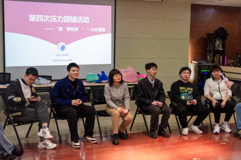 11月20日下午,机械工程学院研究生在格物楼316开展“赋能前行,做一个幸福快乐的零帕族”压力管理第四次团体辅导--“做‘零帕族’---认知重建”主题活动。活动由机械工程学院研究生辅导员、国家三级心理咨询师侯静指导。