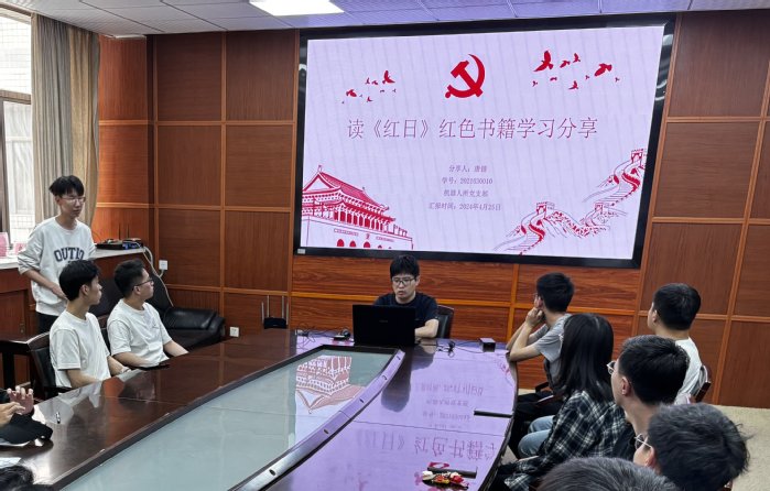 预备党员们分别分享了自己在精神引领、道德修养方面有深刻影响的红色书籍,如《红日》、《保卫延安》、《苦难辉煌》等,介绍其写作背景和具体情节等内容,并深谈自己的阅读感想和心得体会。吴文渊同学分享的《苦难辉煌》讲述了红军战士们在长征中面对艰难困苦始终坚守理想和信仰的故事。季永涛和唐锴同学分享的《红日》是以1947年发生在江苏涟水、山东莱芜、孟良崮三次战役为主线的三次战争,再现了解放军取得胜利的不易与伟大。同学们聚精会神、认真倾听,分享者饱含深情的讲述让革命先辈们伟大的形象走进了同学们心中。
