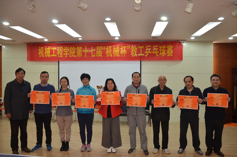 本次比赛共有12支代表队,近100名教师参加了比赛。经过小组赛和淘汰赛两个阶段36场比赛的激烈角逐,最终设计三队勇夺团体冠军,获得第二至第八名的分别是:工程图学队、院机关队、元老队、设计一队、摩擦所队、设计二队、机电队;随后在学院组织的单打比赛中高荣慧老师和潘陆桃老师分别荣获男女单打冠军。