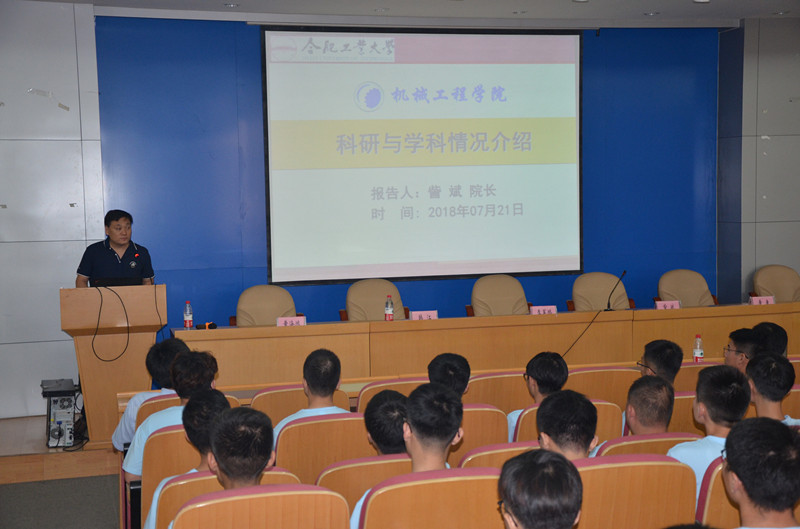 夏令营开营仪式在格物楼214会议厅隆重举行。合肥工业大学研究生院副院长兼研究生招生办主任李军鹏致欢迎词并介绍了学校概况,机械工程学院党委书记韩江代表学院欢迎夏令营营员的到来,机械工程学院院长訾斌介绍了机械工程学院和机械工程学科的总体情况,会议由机械工程学院副院长黄海鸿主持。出席会议的还有学院副院长黄康、左登发和多位学院系所和科研团队代表。简短的开营仪式后,系所和科研团队代表韩江、刘焜、黄康、毕传兴、宋守许、祖磊、王勇、凌琳和王国栋等结合各自研究方向的学科前沿以及研究生培养情况等进行了相关介绍。