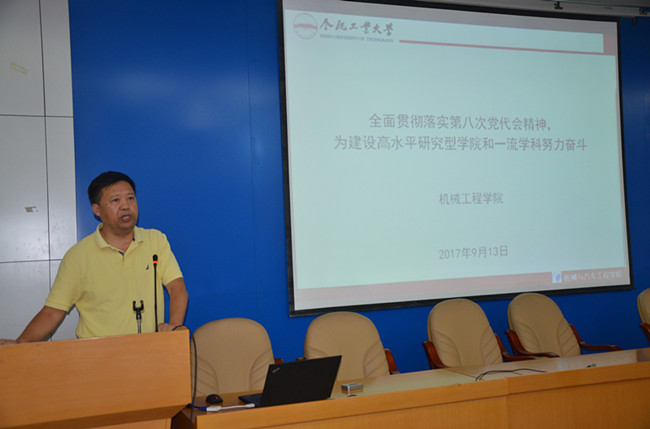9月13日下午,机械工程学院在格物楼二楼报告厅召开教职工大会,结合学院贯彻落实校第八次党代会精神的措施方案布置新学期工作,学院领导班子成员、全体教职工参加了会议,会议由院长訾斌主持。