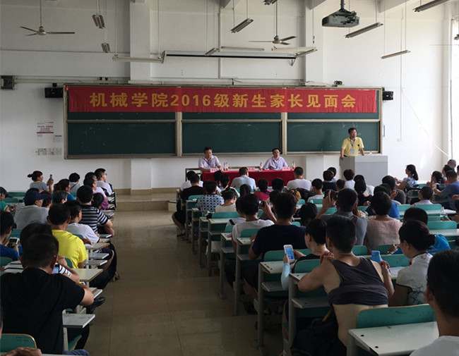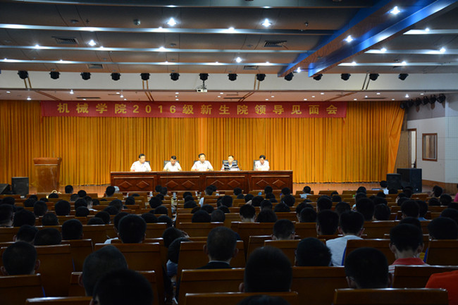 25日下午,机械学院隆重举办学院领导与2016级新生见面会。会上,机械学院副院长黄康教授对581名新生的到来表示热烈欢迎,也对新生今后的大学生活提出了殷切希望和严格要求。机械学院党委书记韩江教授介绍了合肥工业大学发展历程和学院情况,并对新生的日常行为规范提出了具体的建议和要求。韩书记强调,新生要尽快适应大学生活,努力培养独立自主的学习意识,制定目标并坚持执行。随后,各专业系主任介绍了本系师资力量、人才培养模式、专业特色及发展前景、近年来的就业去向等,同时结合大学生思想、生活、学习特点和成长规律,耐心解答学生的现场提问。