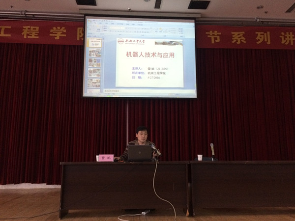 讲座中,訾斌教授首先介绍了国外机器人领域的先进发明,解读了各类型机器人在工业生产方面的重要应用,提出实现人机交互完成作业是未来工业发展的重要趋势。同时,訾教授向同学们讲解了机器人的相关基础知识,提出机器人的未来发展并不是单一学科的作用,而是多学科的融合和配合,是一个具有极大潜力的研究领域。整场讲座深入浅出,赢得了在场师生的热烈掌声。讲座后,訾教授就学生提出的相关问题进行了系统地解答。