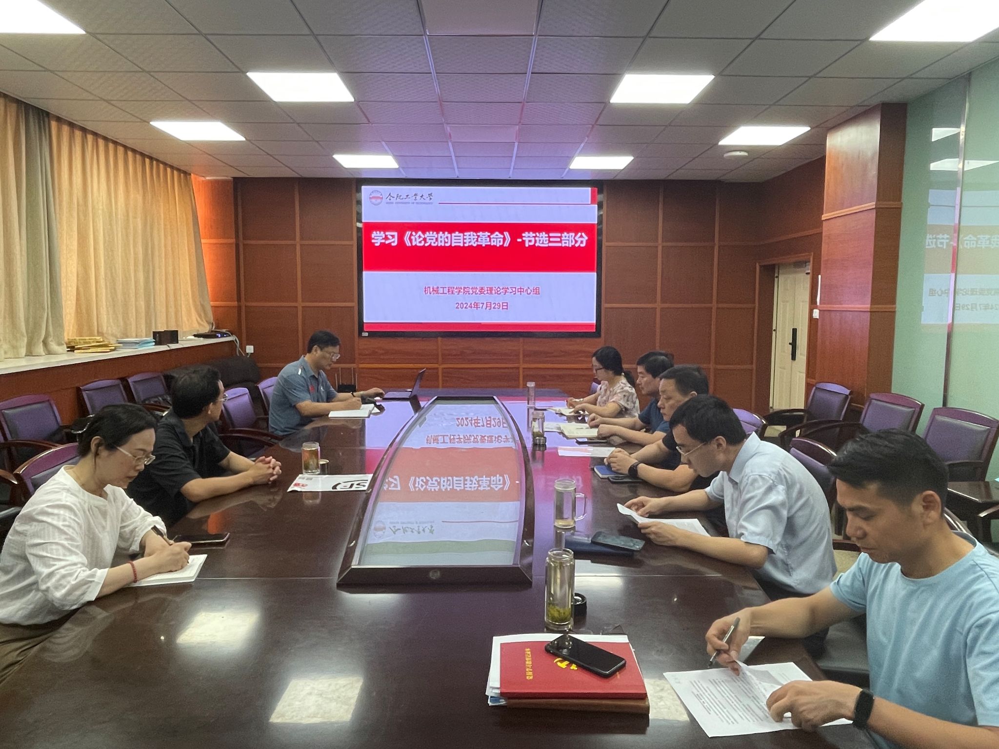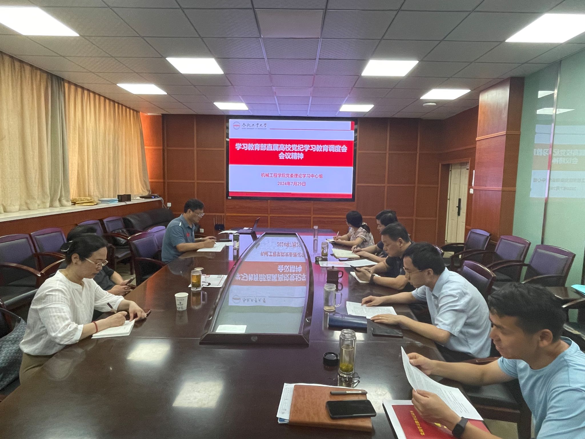 7月29日上午,机械工程学院党委理论学习中心组在格物楼308开展集中学习,学院党委书记张显东主持会议,学院党委理论学习中心组其他成员参加学习。