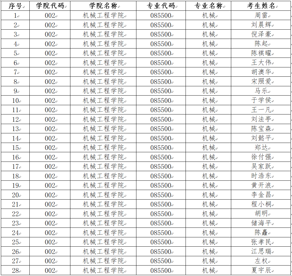 机械工程学院2025年第一批工程博士研究生(专业学位) 拟录取名单公示