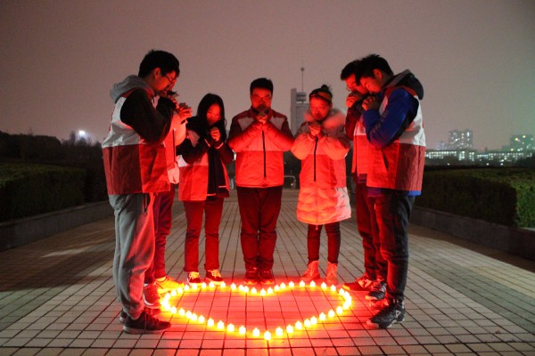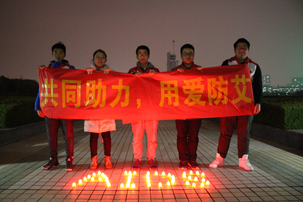 12月17日晚,机械工程学院紫笛社红十字部于翡翠湖校区俪人湖畔开展为“艾”祈福活动。在祈福过程中,志愿者们将蜡烛摆成“HOPE”、“AIDS”和心形等形状,为艾滋病人祈求爱与希望。