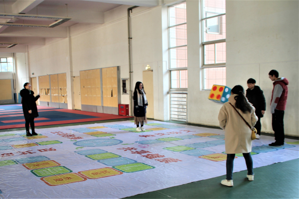 12月16日上午,防“艾”趣味运动会于体育馆一楼进行。四名参与人员为一组,根据通过设置的“艾滋来了”“病毒传播”“攻击细胞”“感染细胞”“复制病毒”“机体崩溃”等关卡,每组顺次通关后会获得对应的奖励,使同学们在运动过程中更全面地了解了艾滋由感染至发病的常识。