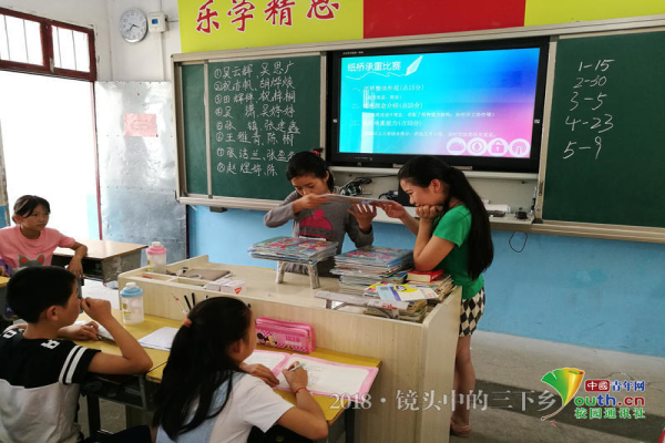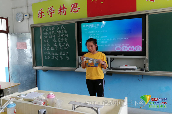 “这个活动主要锻炼孩子们的动手能力,促使他们在实践中不断思考,激发他们的创新意识。原理是利用纸桥中的各种锥形、三角形、圆柱等承重力好的结构,来分散、抵消外部压力。”支教团队长如是说。