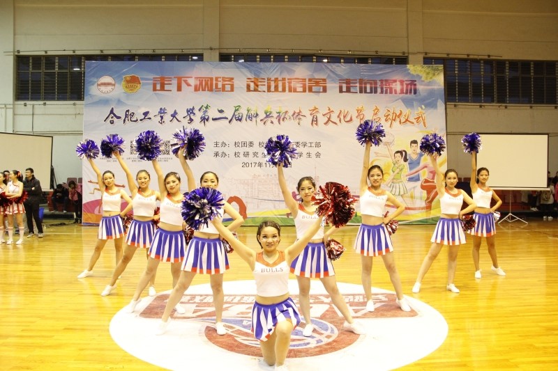 11月18日下午,合肥工业大学第二届 “斛兵杯”体育文化节在翡翠湖校区体育馆圆满落幕。来自全校的18支啦啦操队伍的亮相给全场所有人带来不一般的视觉震撼。来自英国上市公司365的是一支青春、活力、健康、向上的啦啦队,她们在动感十足的音乐中,配以赏心悦目的服装,加上队员们活力四射的舞蹈,最终荣获校三等奖的好成绩。