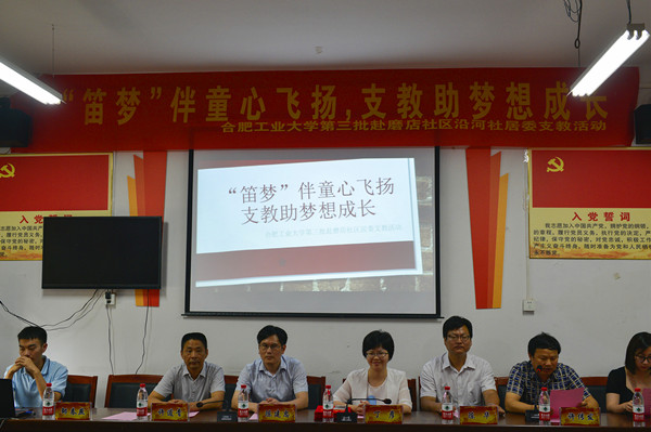 7月15日上午,“笛梦”服务团在合肥市磨店沿河居委会二楼会议室举行了“笛梦伴童心飞扬,支教助梦想成长”文艺汇演。合肥市磨店管委会主任丁彦等当地负责人、机械工程学院党政办主任陈华及学院老师和部分学生家长出席了本次活动。活动中,志愿者和孩子们热情高涨,纷纷登台表演,二胡独奏、歌曲串烧、爵士舞、手语合唱等节目迎来了热烈掌声。至此,“笛梦”科技支教暑期社会实践活动在本次文艺汇演中落下帷幕,出席嘉宾对本次支教活动予以了高度评价,“感谢合肥工业大学学子为孩子们带来关爱和知识,通过各种新颖教育形式让孩子们能够从小树立理想和科技意识。”,沿河村党总支书记许传发对志愿者们说。