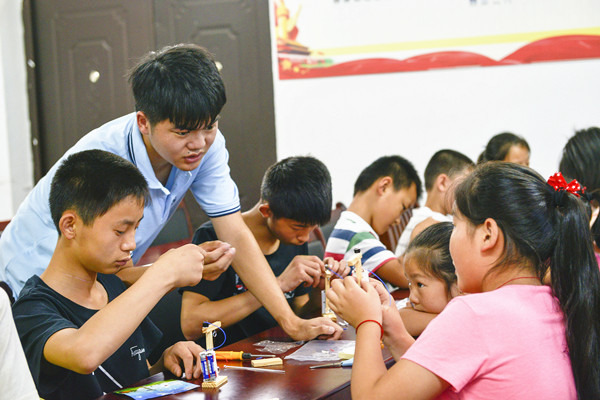 为响应党和国家号召,坚持以人为本,关爱留守儿童。7月8日-15日,由磨店社区党政办、沿河村团支部组织,机械工程学院“笛梦”科技支教关爱服务团主办的暑期三下乡实践活动于合肥市磨店乡沿河村平和希望小学开展。