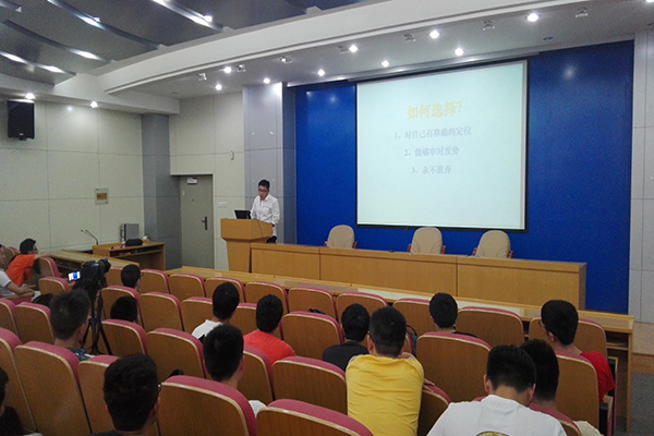 5月28日晚,已入亥时(晚上十点多),格物楼214报告厅依然有铿锵洪亮的声音传来,随着声音的临近,细看却是一幅相谈甚欢的场景。讲话的几个人西装革履,一直侃侃而谈,剩下的则聚精会神,时而提出疑问。没错,我们的青春引路人正在给学弟学妹们进行“传道授业解惑”。